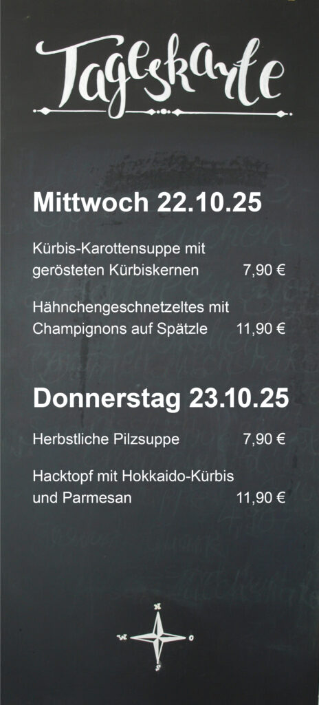 Eines vorweg: Auch wenn ich gelegentlich leckere Fischbrötchen anbiete, wir sind kein Fisch-Restaurant. Wenn Sie aber Ihre wohlverdiente Mittagspause in freundlichem Ambiente verbringen möchten, bieten wir Ihnen von Mittwoch bis Freitag den idealen Mittagstisch: